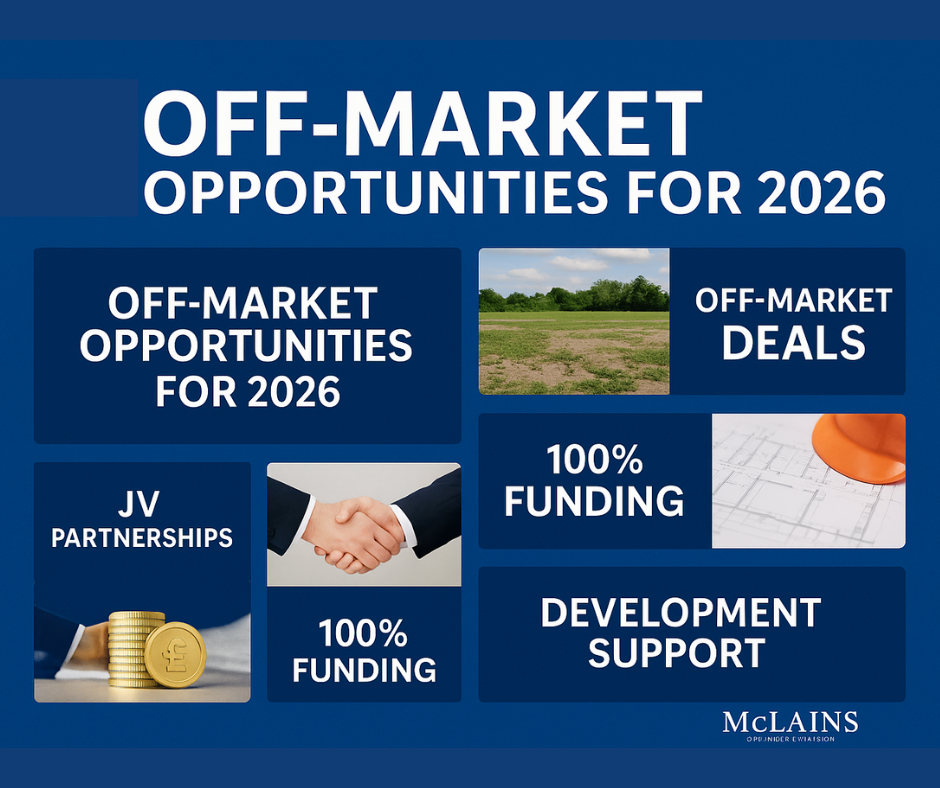 2026 will be the strongest year yet for off-market acquisitions, JV partnerships, flexible funding, development support, and structured exit strategies.